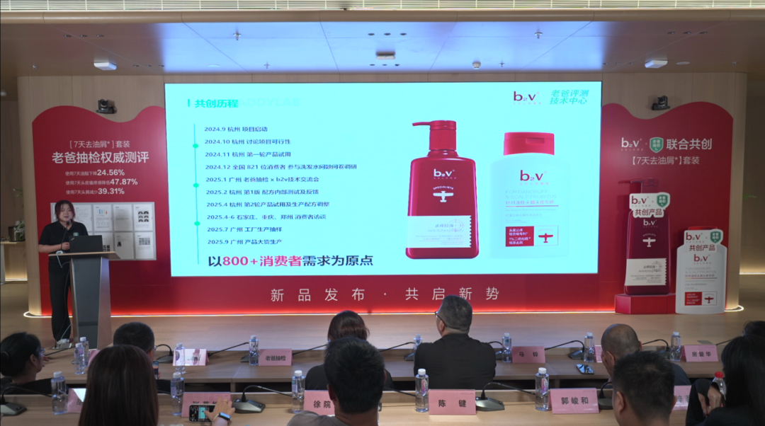 日前,专注于头皮油痒屑领域的b2v品牌在广州推出与老爸抽检深度共创的“7天去油屑套”。据悉,这个套组产品是双方全链路合作的首个洗发水成果,为有油痒屑困扰的消费者提供高效解决方案,同时开创洗护CP新时代。