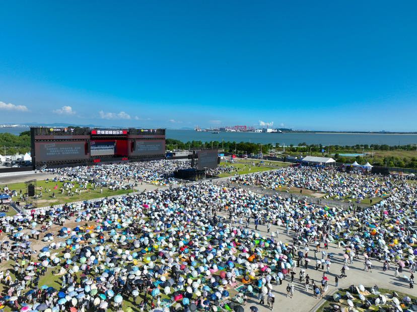 随着无人机镜头掠过,数以万计的乐迷挥舞荧光棒和手机闪光灯汇聚成璀璨星河,年轻的面孔、相约的好友、和美的家庭、国际化的观众群体共同构成南沙夏夜最动人的画面。