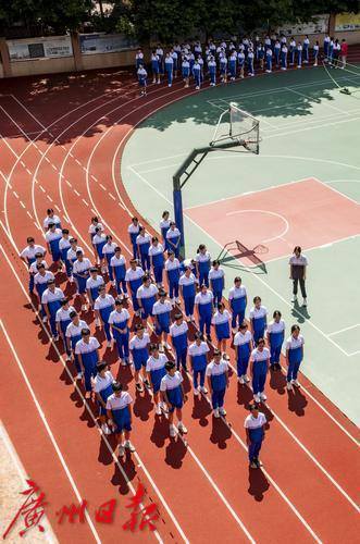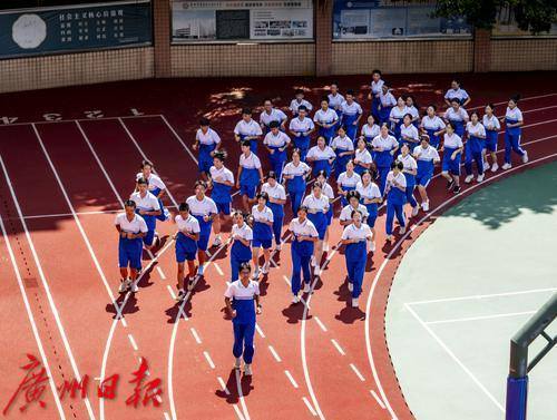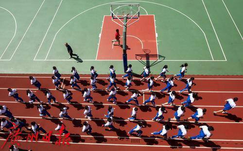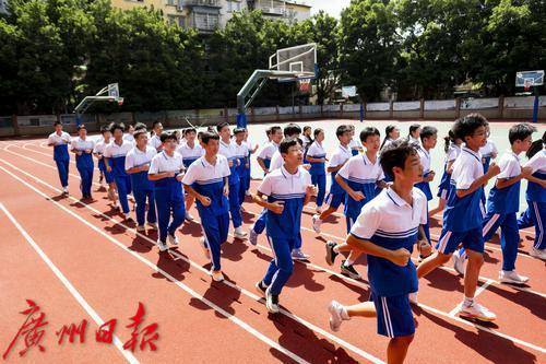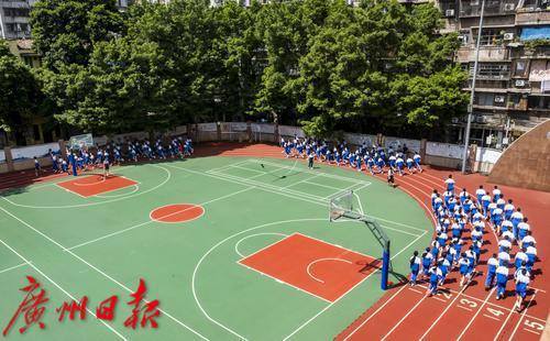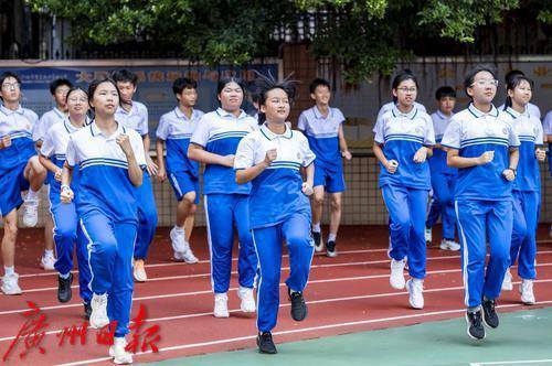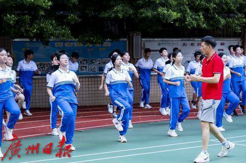 广州市贸易职业高级中学,学生参加课间体育锻炼。