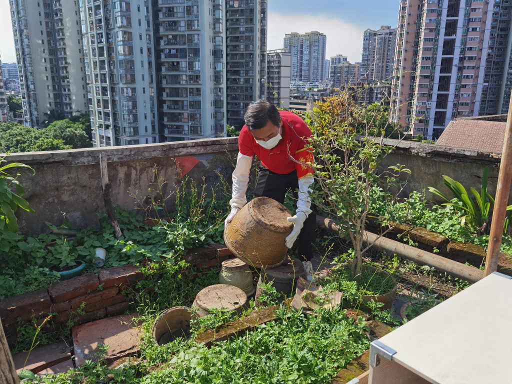 针对老旧小区、单体楼天台易积杂物、易生积水的“隐蔽性痛点”,街道将天台整治列为蚊媒孳生地治理的“主战场”,组建由机关干部、社区工作者、物业人员及志愿者组成的“清剿队”,开展逐栋排查整治。