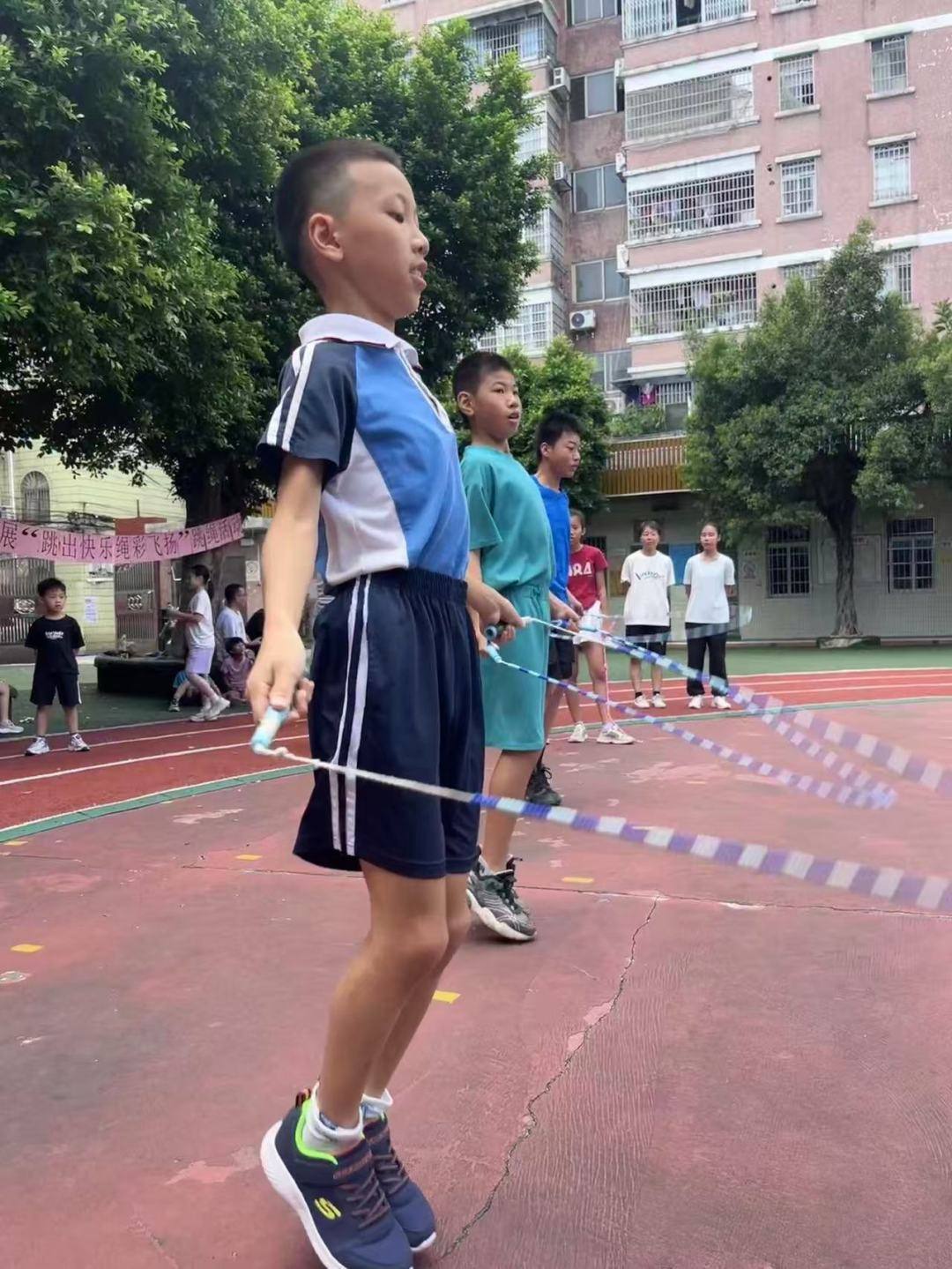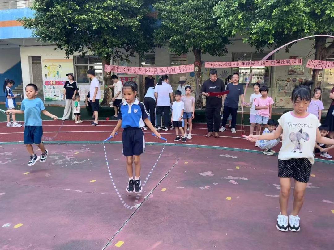 9月14日上午,时逢周日,为鼓励青少年积极参与体育活动,提高身体素质与免疫力,培养团队合作精神和竞技意识,同时营造全民迎接全运会的氛围,广州市天河区西湖社区举行了“全运跃西湖・少年绳采飞扬”跳绳比赛。