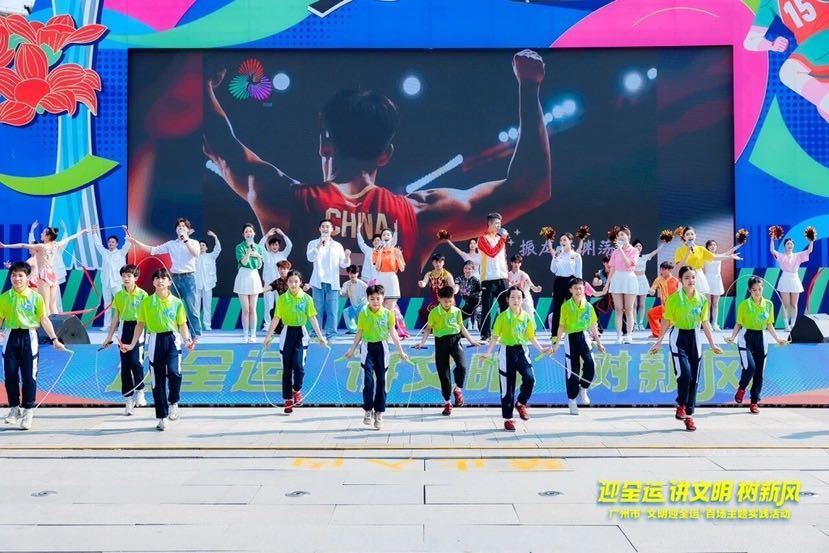 迎全运盛会,展文明风采。还有55日,十五运会将在广州盛大开幕,为丰富市民群众精神文化生活,营造浓厚热烈的全运氛围,今年4月以来,广州精心谋划组织“迎全运讲文明树新风”百场主题实践活动,聚焦文明交通、文明服务、文明礼仪、文明旅游、文明餐桌、文明观赛、生态环保、文化体育等八大主题111场,引导市民在参与活动中感悟核心价值观内涵,塑造城市文明新风貌。截至目前,全市已开展超85场文明实践大型活动,让文明之花遍开羊城大地,广泛掀起全民参与全运、宣传全运的热潮。