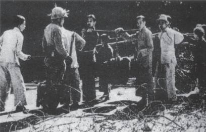 ▲日军在青山道设置岗哨搜查过路行人。