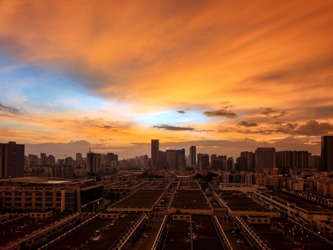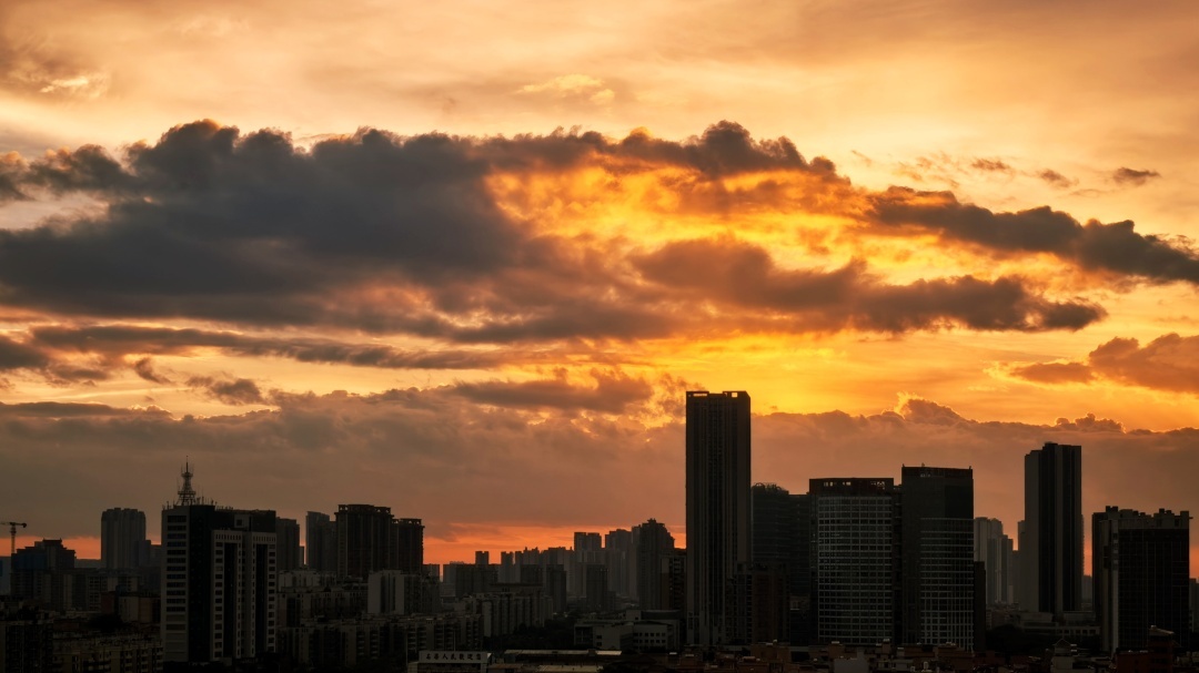 9月16日清晨,佛山出现了一场橘黄色日出,绝美的火烧云横贯天际线,将大地“染”成了一片金黄色。