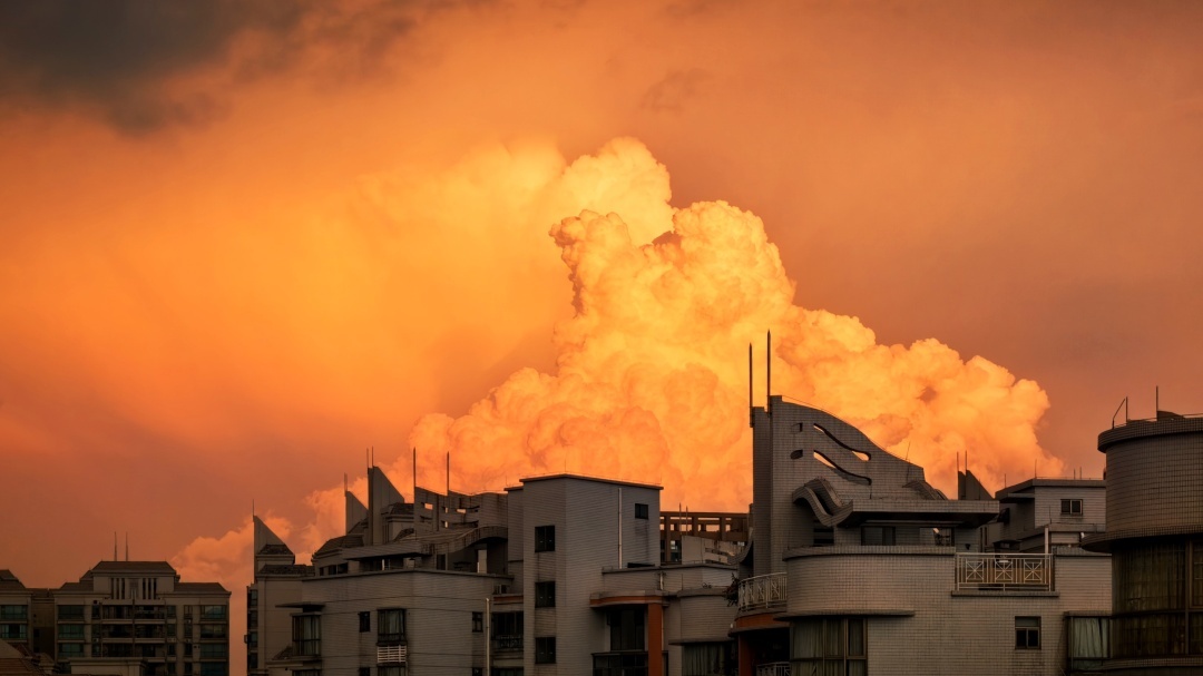 更惊奇的是,在城区的西边,同时出现了一个橘黄色的巨型云朵。随着太阳的升起,这块云朵像甜筒雪糕一样慢慢“融化”。据气象部门预报,今明两日,佛山多云为主,午后有雷阵雨。目前各区高温黄色预警信号正在生效,需注意防暑防晒。