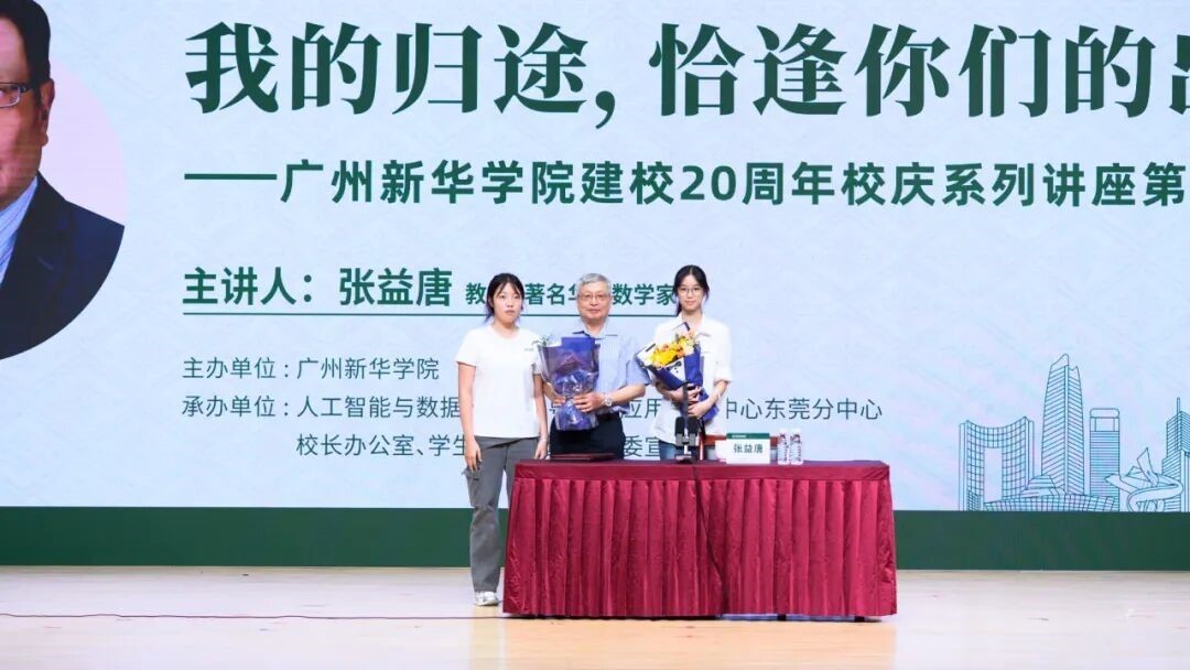 9月15日,在广州新华学院开学典礼暨军训动员大会结束之后,著名数学家、中山大学香港高等研究院首席科学家张益唐教授做客广州新华学院“学者讲坛”,为全体新生带来了一场题为“我的归途,恰逢你们的出发”的专题讲座,深情分享了自己的人生经历与学术感悟,以“归途”呼应青年一代的“出发”。适逢广州新华学院建校20周年,本次讲座作为校庆系列学术活动的首讲,在师生热切的期待中拉开帷幕。