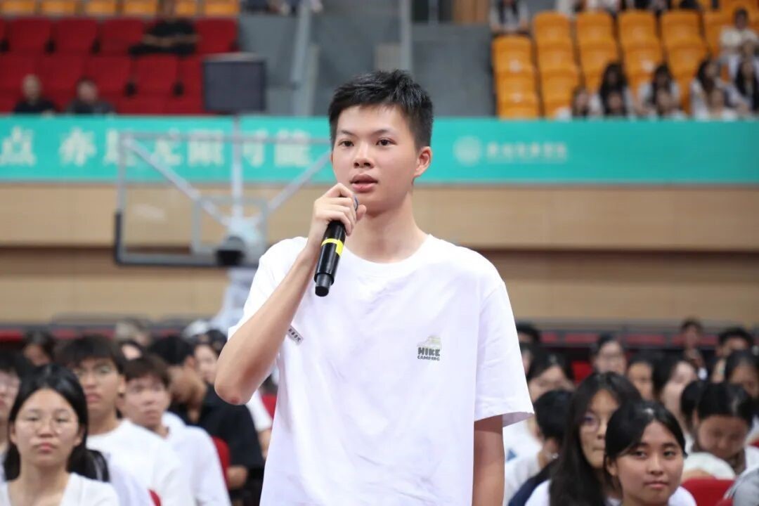 讲座现场气氛热烈,在互动环节,多位2025级新生围绕“学业与竞赛平衡”“专业信心建立”等话题踊跃提问,张益唐教授建议不必过度关注竞赛结果,以更从容的心态实现两者的协调;面对困难学科,可通过课外阅读和交流讨论拓宽视野,保持求知热情。