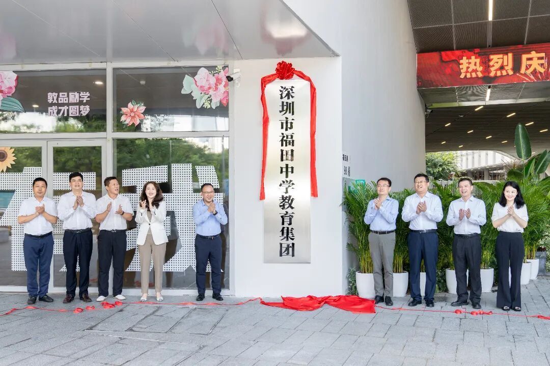 9月16日,深圳市福田中学教育集团正式揭牌。福田区委副书记、区长周江涛,区领导嵇昭宇,福田区委教育工委书记,区教育局党组书记、局长王巍等领导,区教育局党组成员、副局长、深圳市福田中学教育集团党委书记赵盟,深圳市福田中学教育集团各成员校主要负责人,以及福田区各初、高中主要负责人参加了本次揭牌活动。该集团以具有56年办学历史的福田中学为核心校,依托中心城区区位优势、现代化校园设施和雄厚师资,整合优质资源,突出科学特色,致力于办成区域基础教育的“金色名片”,建设国内一流科学高中,打造教育强国建设的高中教育样板。