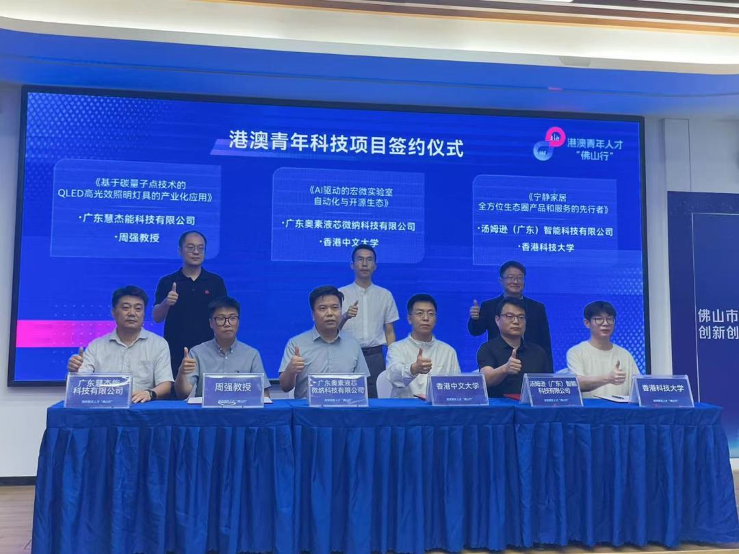 当天,现场还举行了港澳科技成果项目路演和港澳人才项目签约仪式,来自香港大学、香港科技大学、香港中文大学、澳门大学、澳门理工大学等高校项目进行了项目路演展示,并与参会企业开展精准对接,三个项目现场与佛山企业签署落地意向协议,将在人工智能、节能环保、生物医药等领域开展深度合作。