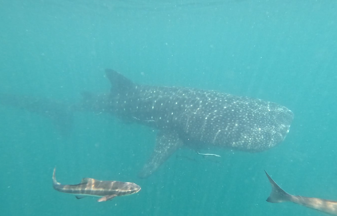 近日,南海生态中心珊瑚礁调查监测研究团队在海南文昌海域开展珊瑚礁生态系统预警监测时,记录到海洋中最大的鱼类——鲸鲨。这是多年来团队在南海近岸珊瑚礁区域监测过程中首次观测到鲸鲨这一大型珍稀濒危动物。