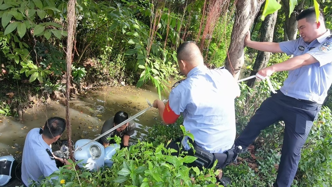 近日,广州市公安局花都分局北兴派出所成功救助一名骑行电动自行车时不慎掉落水沟的女子。