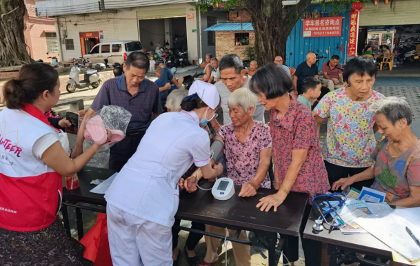 活动中,流书社党建公园内人头攒动,气氛热烈而温馨。在义诊和口腔检测摊位前,医护志愿者耐心细致地为每一位前来咨询的街坊量血压血糖、心率以及进行口腔检测,并根据他们的身体状况给出专业的保健建议,对于村民提出的各种健康问题,医护志愿者都一一耐心解答。