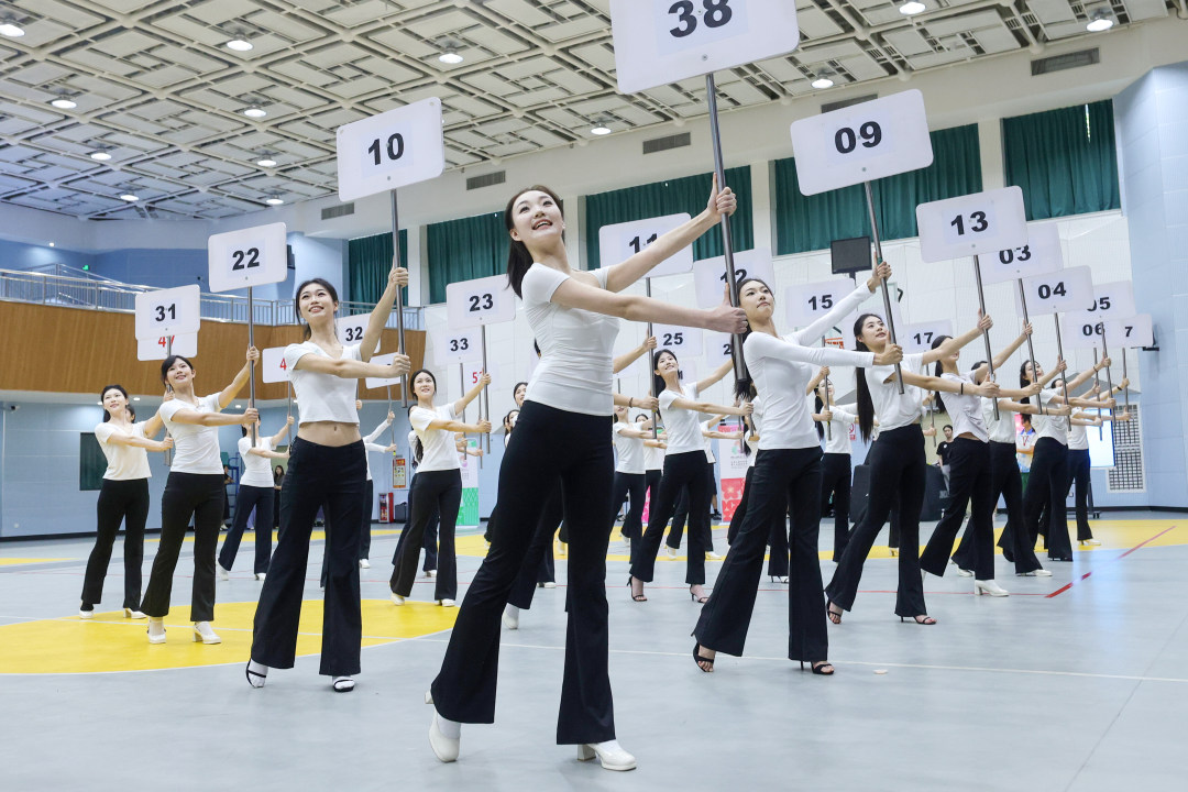 这次十五运会开幕式仪式的引导员,在十五运会开幕式中将承担着“举牌”和“引领”的重要任务。从现场排练来看,引导员们高挑、靓丽,形象好。但在光彩的背后,却是辛苦的准备过程。
