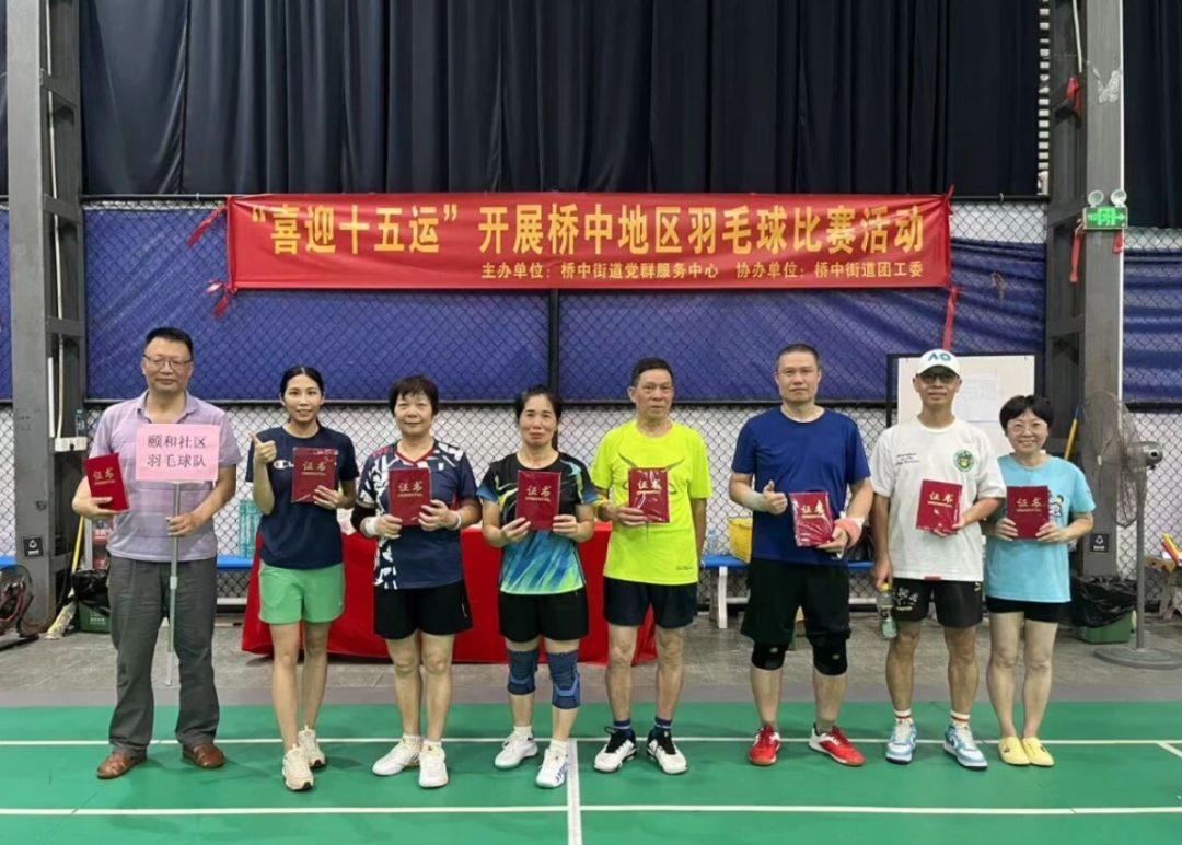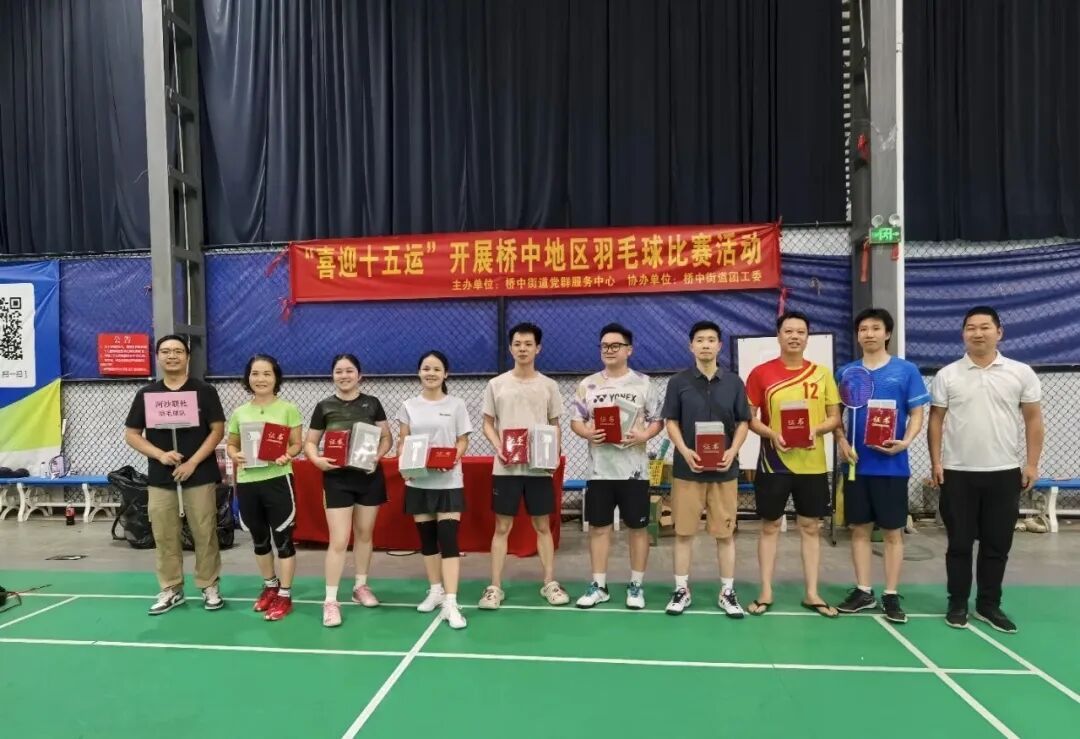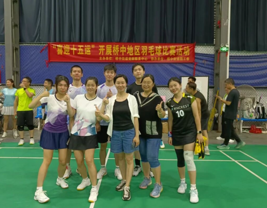 近日,桥中街道在击掌球馆举办了“喜迎十五运”桥中地区羽毛球比赛。来自街道机关、辖区经济联社和社区居委会的10支代表队、70余名运动员齐聚赛场,通过男双、女双、混双三个项目展开激烈角逐,以赛促练、以球会友,全面展现了桥中地区居民昂扬向上的精神风貌。
