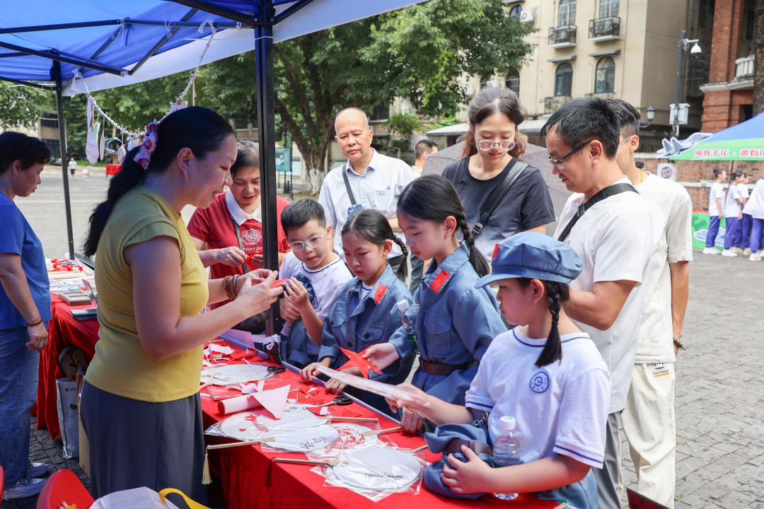 “寓教于乐・缅怀历史”摊位前人气火爆,这里设置的“历史故事照相馆”与“表情包猜历史事件”两大游戏,成为青少年学习红色历史的“趣味课堂”。在“历史故事照相馆”,参与者根据现场展示的历史照片,回答对应历史事件或历史人物;“表情包猜历史事件”则以生动形象的表情符号为载体,让大家快速了解历史事件、历史地名。两项游戏不仅激发了青少年对红色历史的探索兴趣,更让他们在互动中加深了对历史的认知与理解。