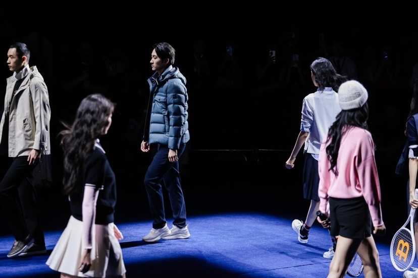 开幕首日,一场“城市流影”大秀拉开T台序幕,打破品类边界,首度发布全新网球系列服装。品牌从都市节奏与网球运动中汲取灵感,将流畅的运动线条与精致都市美学相融合,通过利落剪裁与高科技面料,将商务服饰的质感与运动服装的功能性结合,既完成品牌向运动场景的延伸,又精准契合十五运会热潮与户外运动趋势。