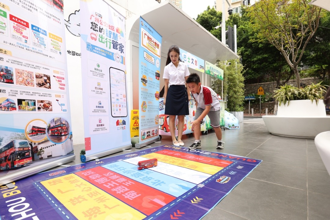 革新路(光大花园)总站的线下摊位同样人气高涨。广州巴士集团现场开设了“公交社区推广”与“巴士文创展示”两个摊位,还给前来参加活动的街坊准备了趣味游戏,让街坊在互动中感受绿色出行的便捷与温度。