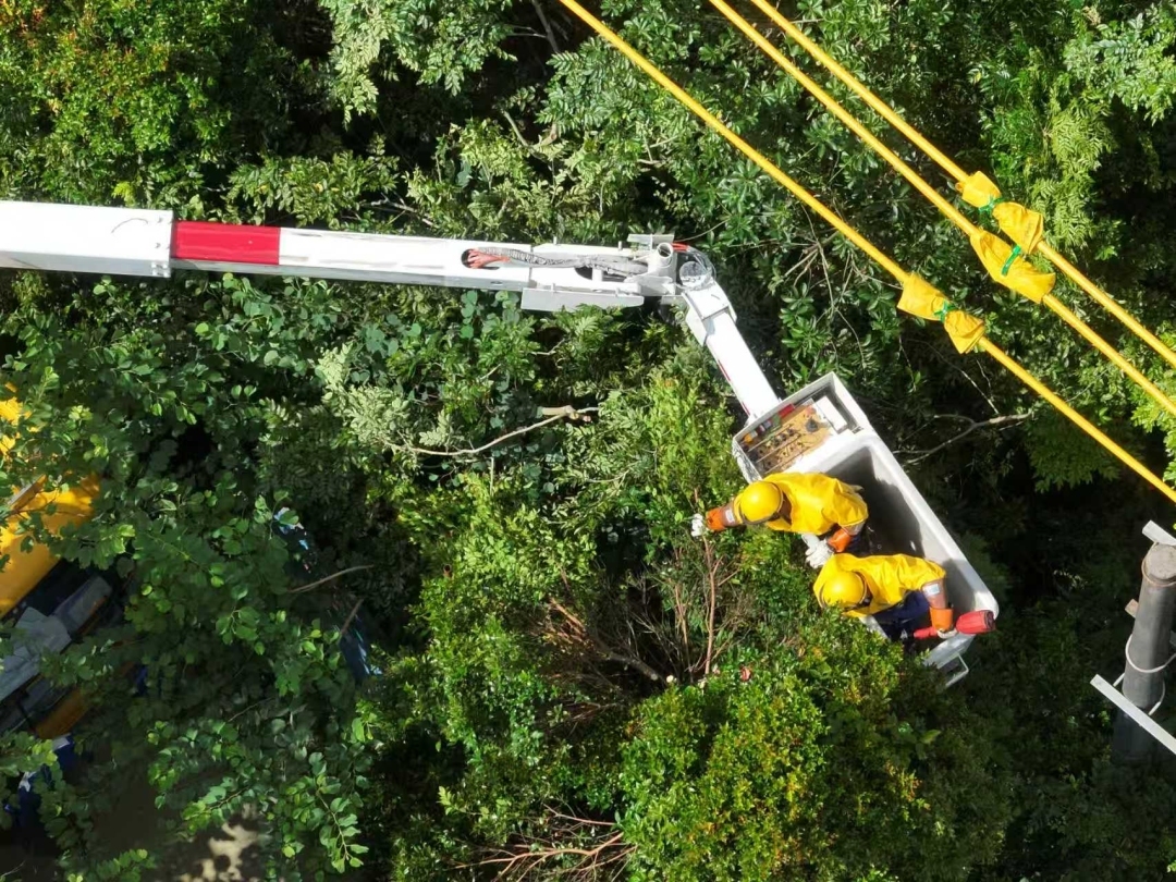 为了应对“双台风”,广东电网公司政企联动,全面清理了影响线行运行安全的树障隐患,清理及加固线路及变电站周边易飘物隐患,对2万余个易水浸地下电房开展排查和封堵整治,全覆盖联系小区物业做好防内涝准备。