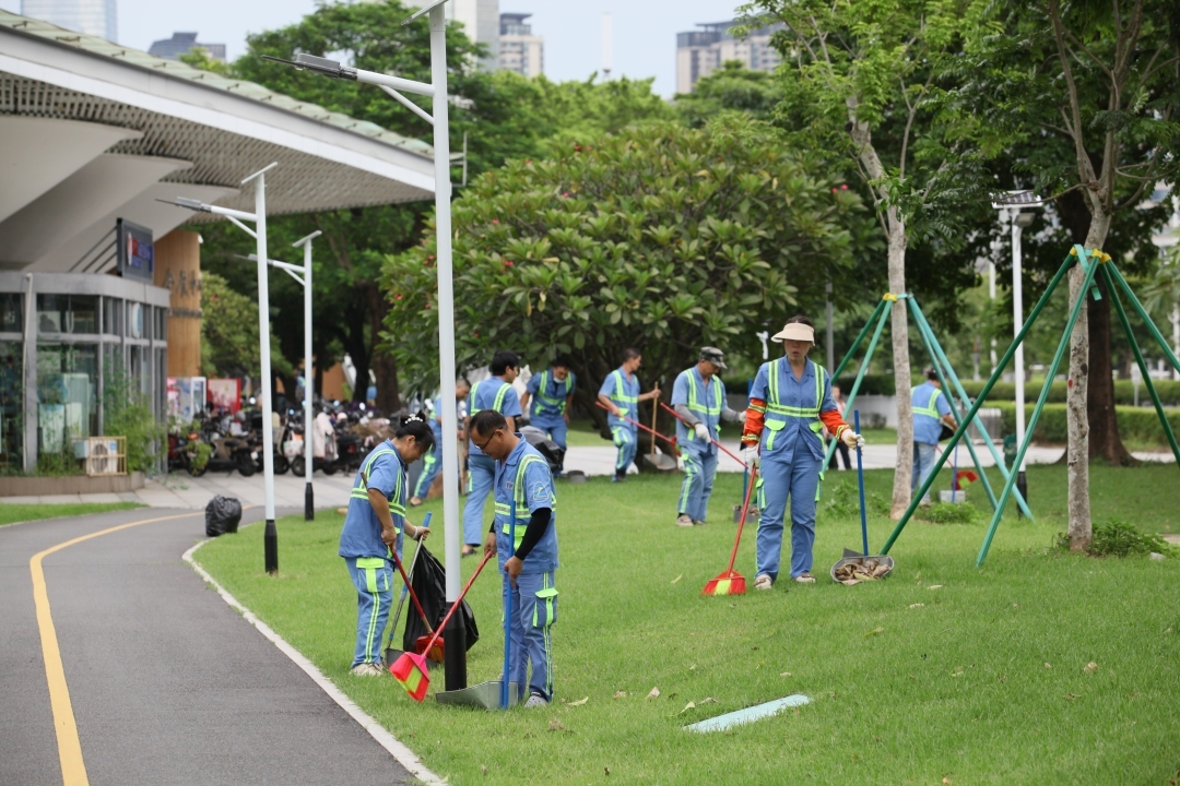 为促进防控工作的高效率、全覆盖,海珠区城市管理和综合执法局联合各街道广泛发动环卫单位、物业公司、社区居民共同参与“洗村”行动和每周五的环境卫生“大扫除”行动,做到“清洁一点、干净一片、整洁一方”,筑牢群防群控屏障,累计出动人员27.9万余人次,清理卫生死角6.8万余处、各类垃圾杂物约1.1万吨,区域环境质量显著提升。同时,每周五定期组织绿化带清理专项行动,重点针对林边涌旁、绿地树丛、村社内部绿化等区域,累计清理绿化带1.8万余处、生活垃圾237吨,进一步清除病媒生物孳生空间。