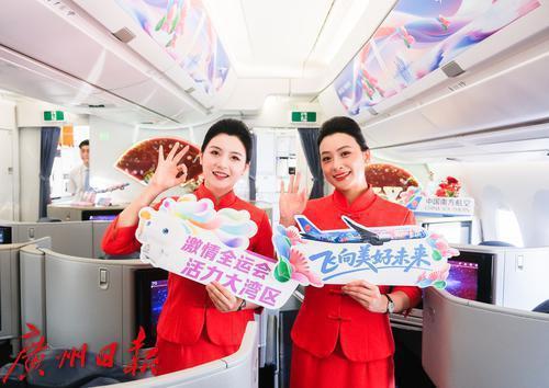 作为第十五届全国运动会和全国第十二届残疾人运动会暨第九届特殊奥林匹克运动会(简称“十五运会”)的官方指定航空服务合作伙伴,南航联合全运会组委会精心打造了“活力湾区号”和“大美湾区号”两架主题彩绘客机,分别为空客A350客机和中国商飞C919客机。 在十五运会开幕倒计时50天之际,南航在广州白云国际机场举行了“活力湾区”号首航仪式。
