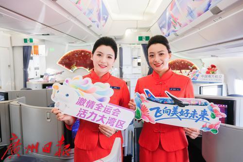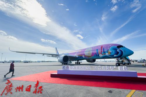 中国南方航空首架十五运会主题彩绘飞机“活力湾区号”。