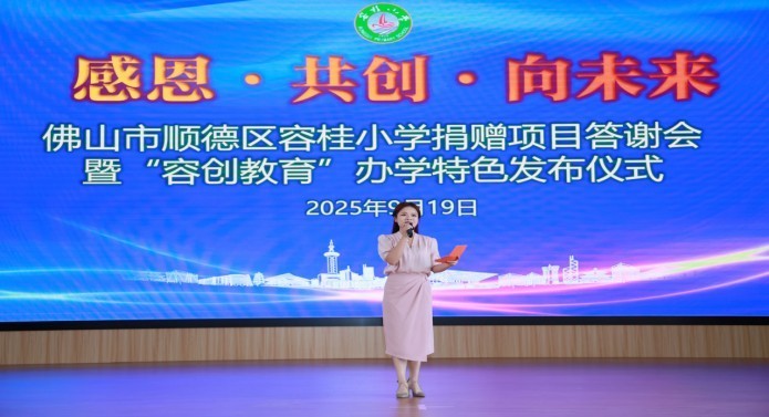 9月19日,佛山市顺德区容桂小学康富校区举行该校捐赠项目答谢会暨“容创教育”办学特色发布仪式。这是一场集“校园焕新见证、特色发布、基地揭牌”于一体的教育盛会,多方合力共同打造“社会-学校-社区”协同育人的“容桂样板”。