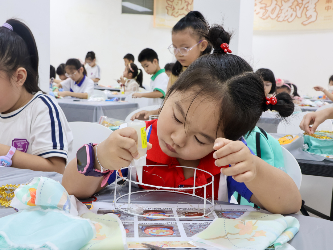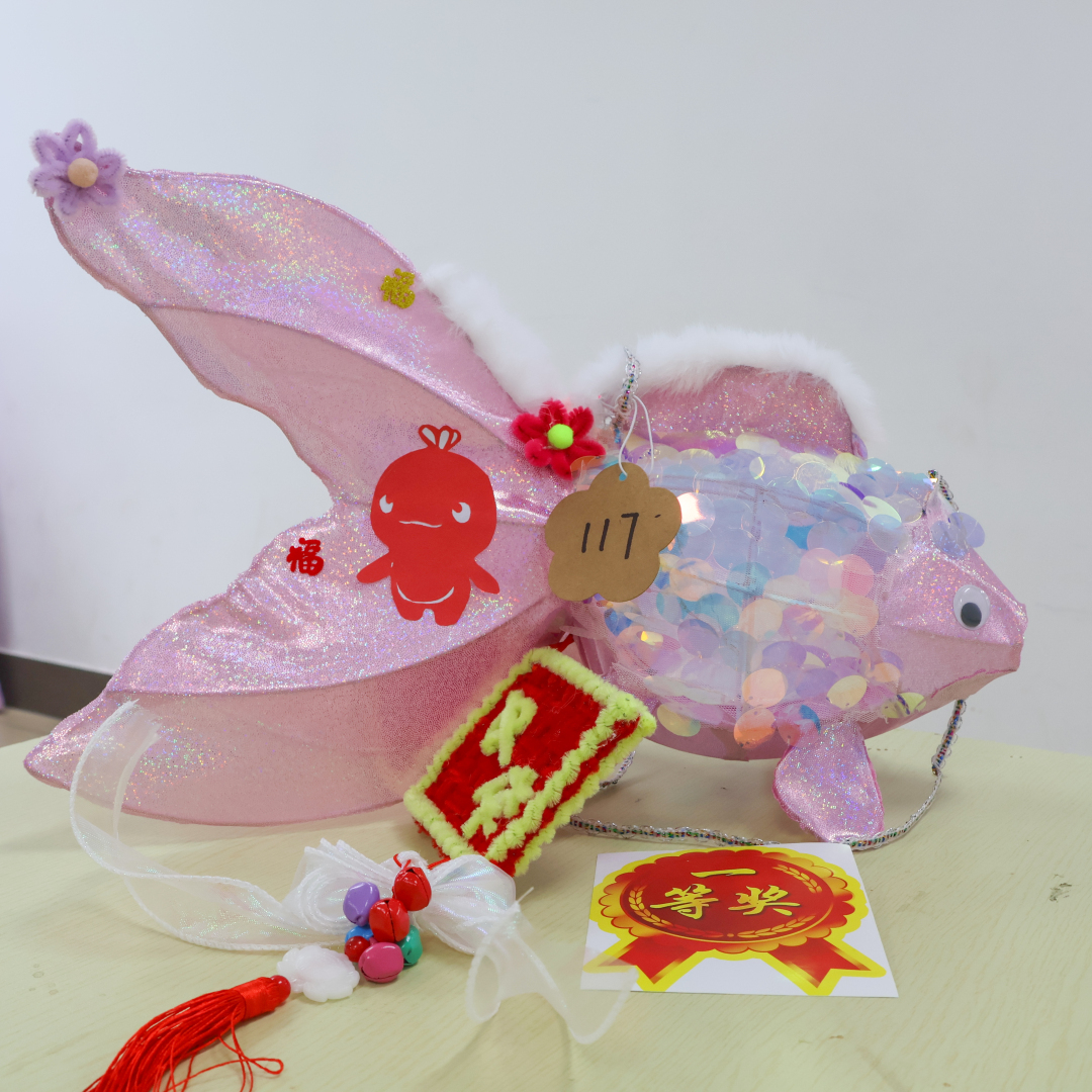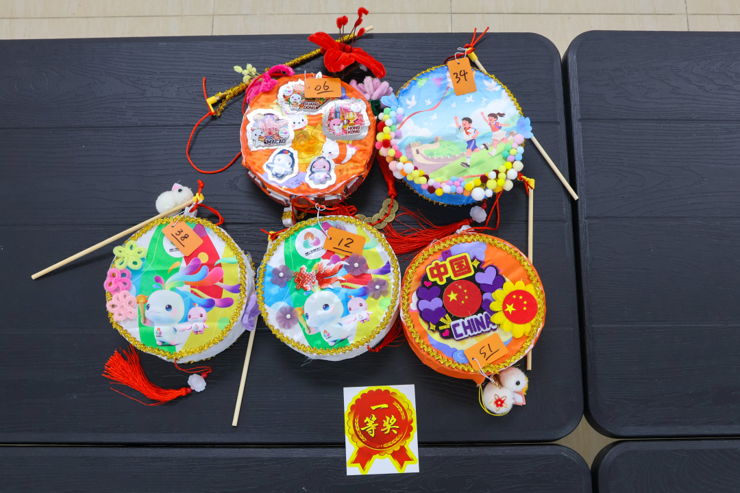 比赛当天,各位同学早早到达现场,在进行签到抽签等流程后,有序进入赛场。不少同学自带饰物,如剪纸、彩球、扭扭棒等,在主办方提供的彩灯框架上进行装饰,把剪纸、彩绘、不织布等创意元素融入创作中,充分体现了奇思妙想和独特创意。当天,不少同学是首次接触传统彩灯制作,但他们一丝不苟,根据制作步骤说明书的提示一步一步有条不紊地进行制作,点胶、扪布、拉紧、收口、装饰……每一道程序,都十分考验人,但参赛同学们最终顺利地完成了彩灯的完整制作。