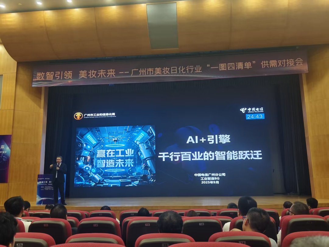 9月20日,广州市美妆日化行业“一图四清单”供需对接会成功举办,工业和信息化部信息技术发展司两化融合推进处、广东省工业和信息化厅、广州市工业和信息化局、工业和信息化部电子第五研究所、中国电信以及来自美妆日化企业、数字化转型服务商和行业协会的代表等近300人参加。