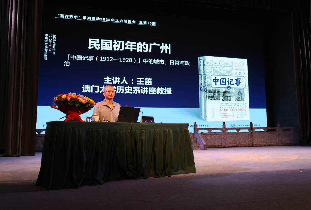 9月21日上午,广州荔湾区“荔泮芳华”系列活动2025年之品读会(第15期)在粤剧艺术博物馆举行。本期讲座特邀著名历史学家、澳门大学历史系教授王笛,讲座主题为《民国初年的广州——〈中国记事(1912—1928)〉中的城市、日常与政治》。开讲前,荔湾区国家档案馆向王笛颁发荔湾历史文化研究特聘专家聘书。有关专家学者及市民朋友一百余人参加了本期讲座。