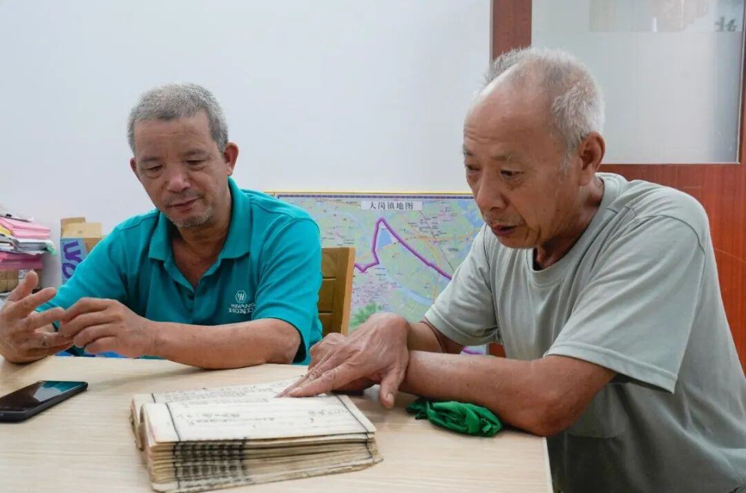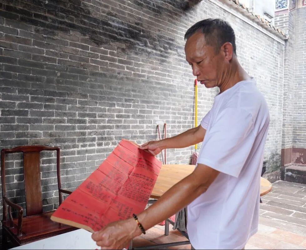 经过岭东牌坊,走进大岗镇岭东村,冯氏后人冯焕辉翻开族谱,讲述:“我们的始祖是佛山顺德人,后来从顺德来到这里,建立祠堂、开枝散叶。”