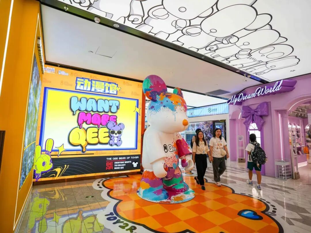其中,MINISO LAND结合岭南传统骑楼与潮玩艺术,打造了广东首家“文创、IP、零售、乐园”相结合的全新店态,成为城市新地标。北京路天河城B区的5500平方米动漫馆,采用“策展+二次元零售品牌”的运营模式,构建起“谷子(周边)+体验+休闲”的全场景消费生态,成为广东商圈中少有的“二次元文化体验高地”。