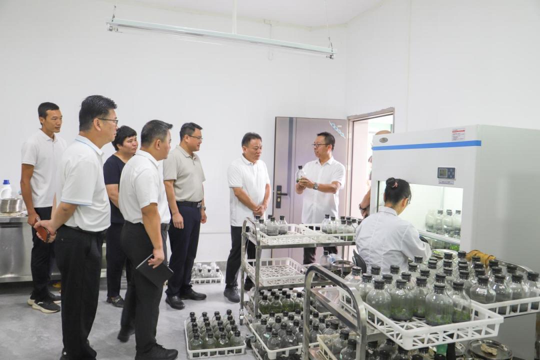 行程的第一站,是位于梅关古道旁的梅关村。空气中浮动着淡淡的幽香,引领着调研团队走进了韶兰(南雄)种苗培育中心。这里并非传统的花圃,而是一个现代化的“兰花工厂”。只见一排排整齐的培育架上,一株株翠绿欲滴的兰花种苗在精密的温控与光照下,展现出蓬勃的生命力。