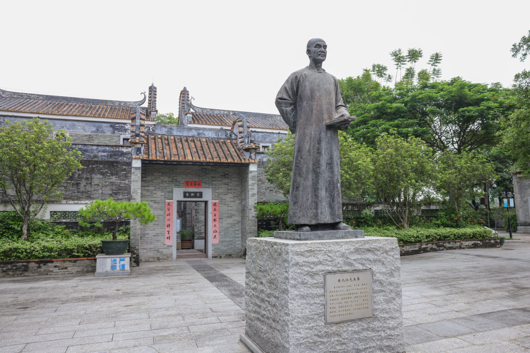 本期“跟着文化名人游广州”来到佛山市南海区九江镇,为纪念朱次琦,在他的故居原址旁,建了一座朱九江纪念公园。