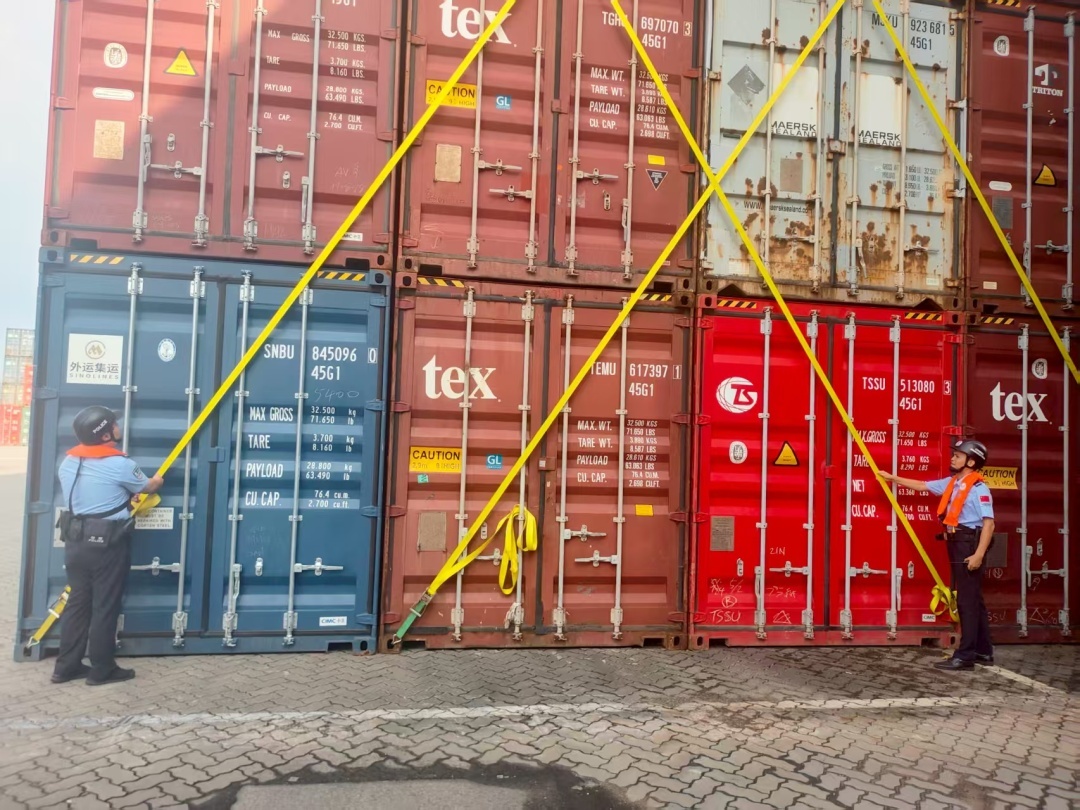 顺德边检站防台风应急分队深入码头一线对进出闸口、集装箱堆场等重点部位进行安全隐患排查