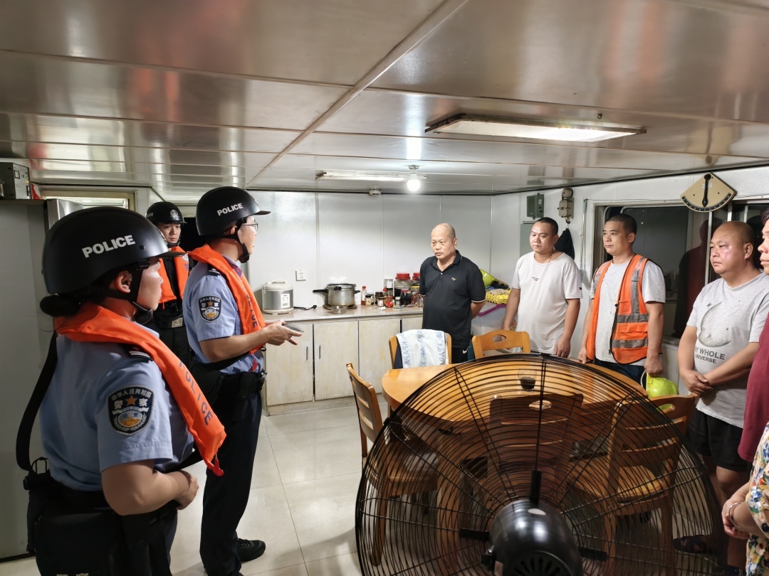 顺德边检站移民管理警察提醒在港避风船舶做好防台风措施