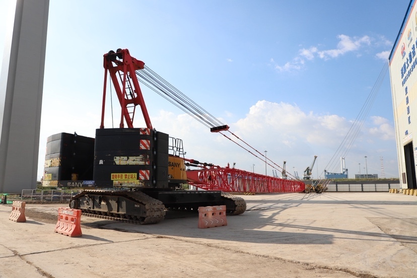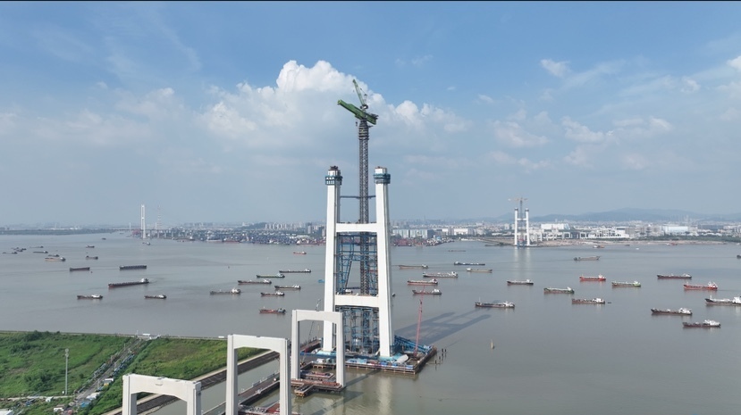 狮子洋大桥近期正进行桥塔建造,为进一步提高主桥主塔施工塔吊的抗风安全储备,结合台风登陆风速研判,项目要求负责主桥施工的T8、T9标段,紧急调派设备厂家专业团队到现场,协同施工团队对两台塔吊采取降低了塔吊在扶墙以上的自由悬臂高度、提升钩头至最高位,同时结合回转风标打开自由回转等措施,全方位、多维度保障塔吊安全度台。