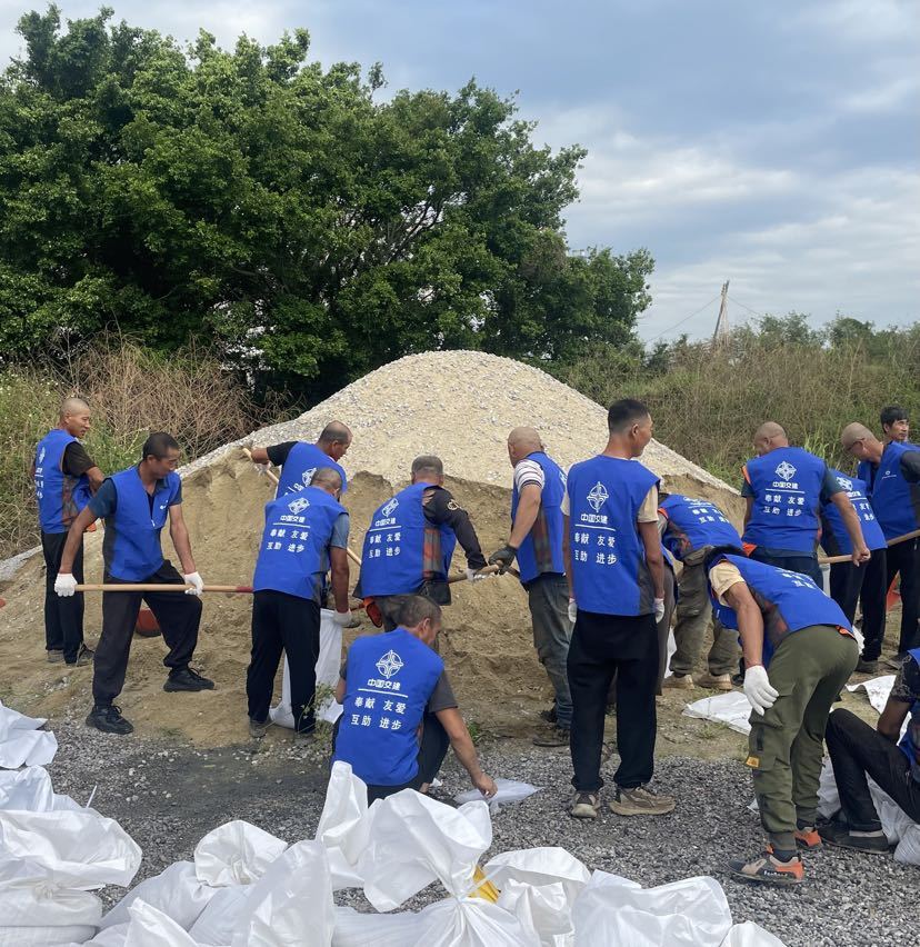 狮子洋通道T10标帮助周边村民开展装填沙袋作业。