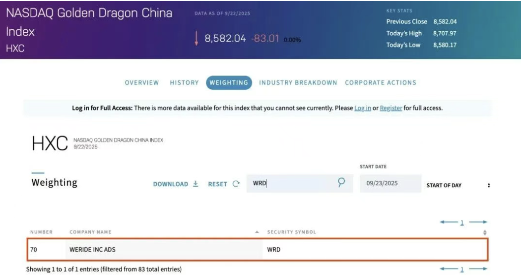 9月22日,文远知行被正式纳入纳斯达克中国金龙指数HXC(Nasdaq Golden Dragon China Index)。纳斯达克中国金龙指数是中概股投资风向标,文远知行被纳入该指数后预期将吸引更多投资者关注。