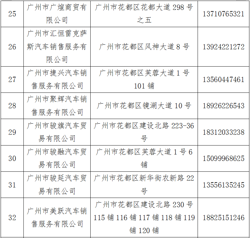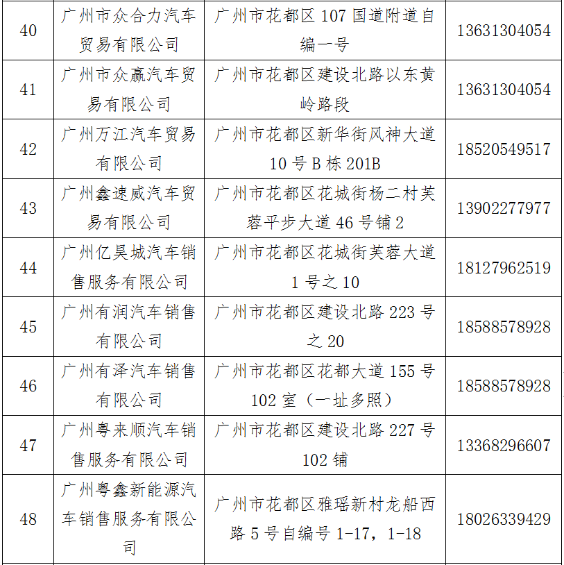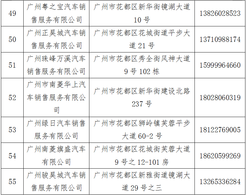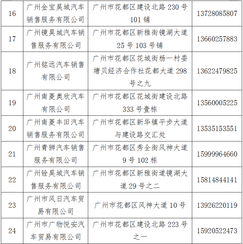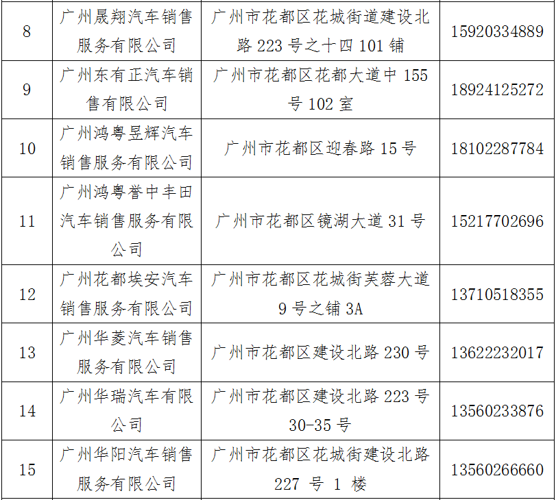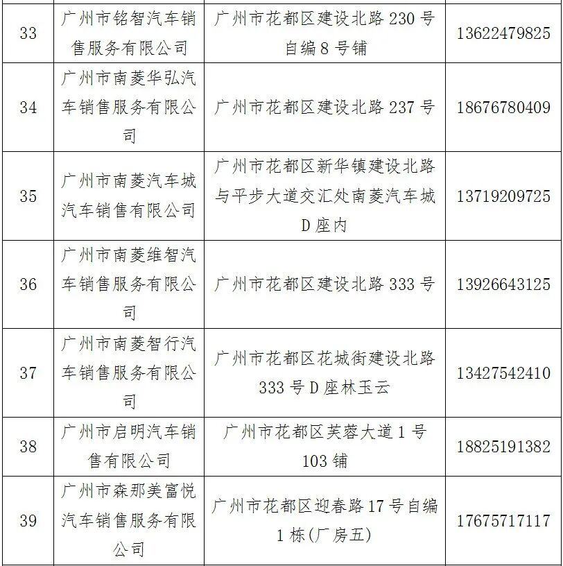 汽车消费补贴活动花都区参与经销商名单