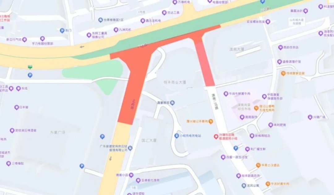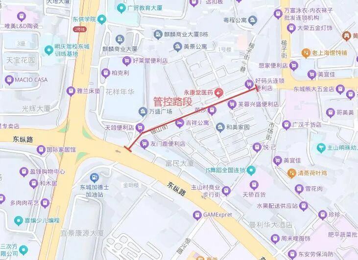 东纵路莞城段(人民公园后门至盈峰广场红绿灯)