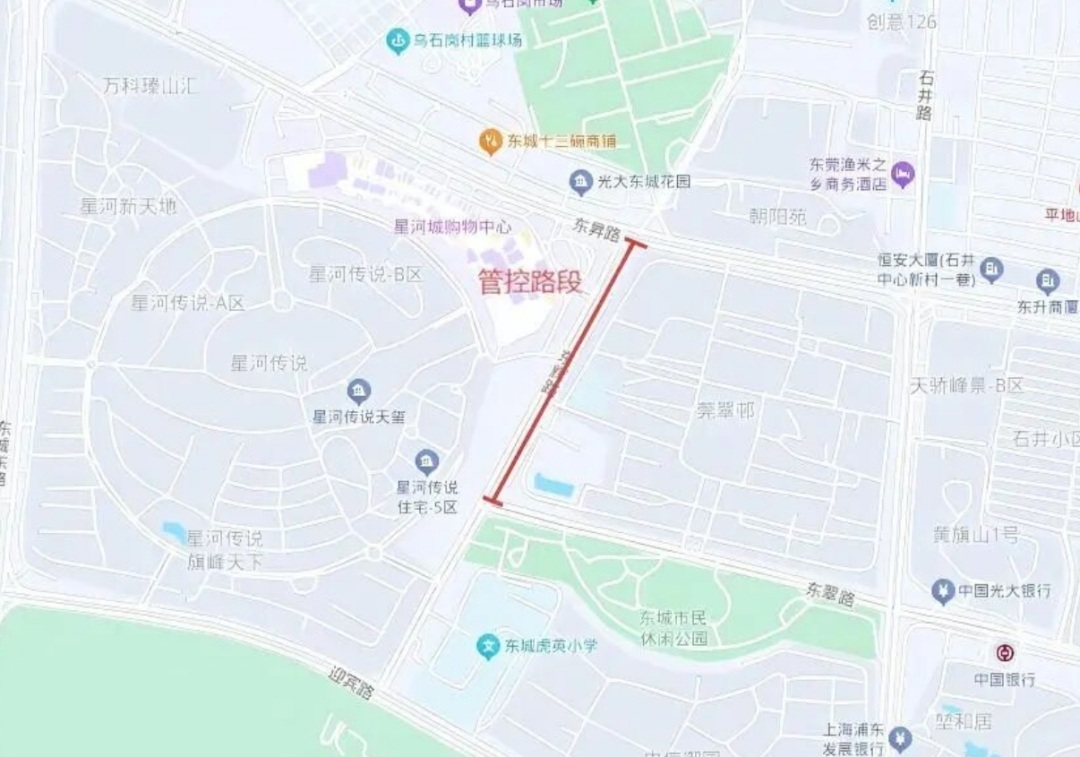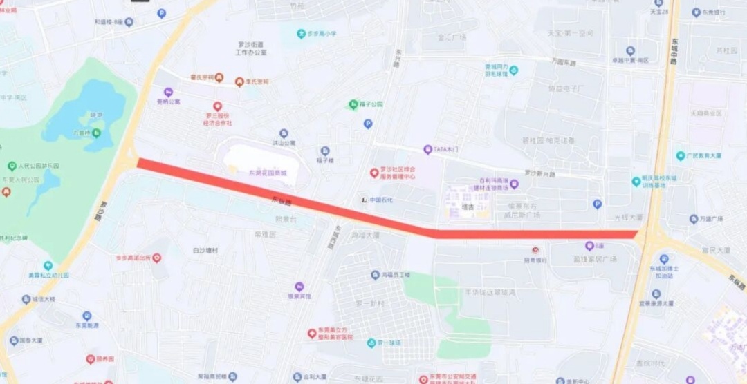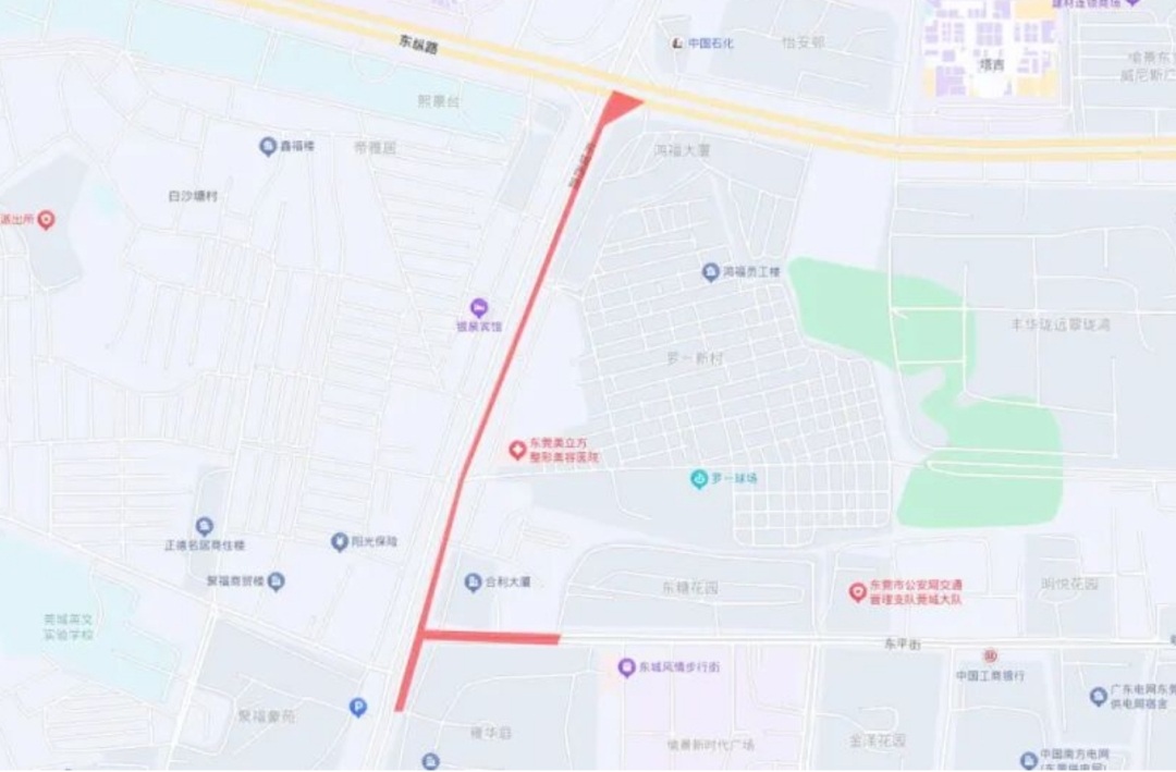东莞市莞城街道自9月23日23时起,对东纵路莞城段(人民公园后门至盈峰广场红绿灯)、东城西路(城区油站红绿灯至雍华庭红绿灯)、学院路(步步高红绿灯至叫尾红绿灯)、八达路(东豪广场至戙船澳红绿灯)实施全封闭临时交通管制,结束时间待定。