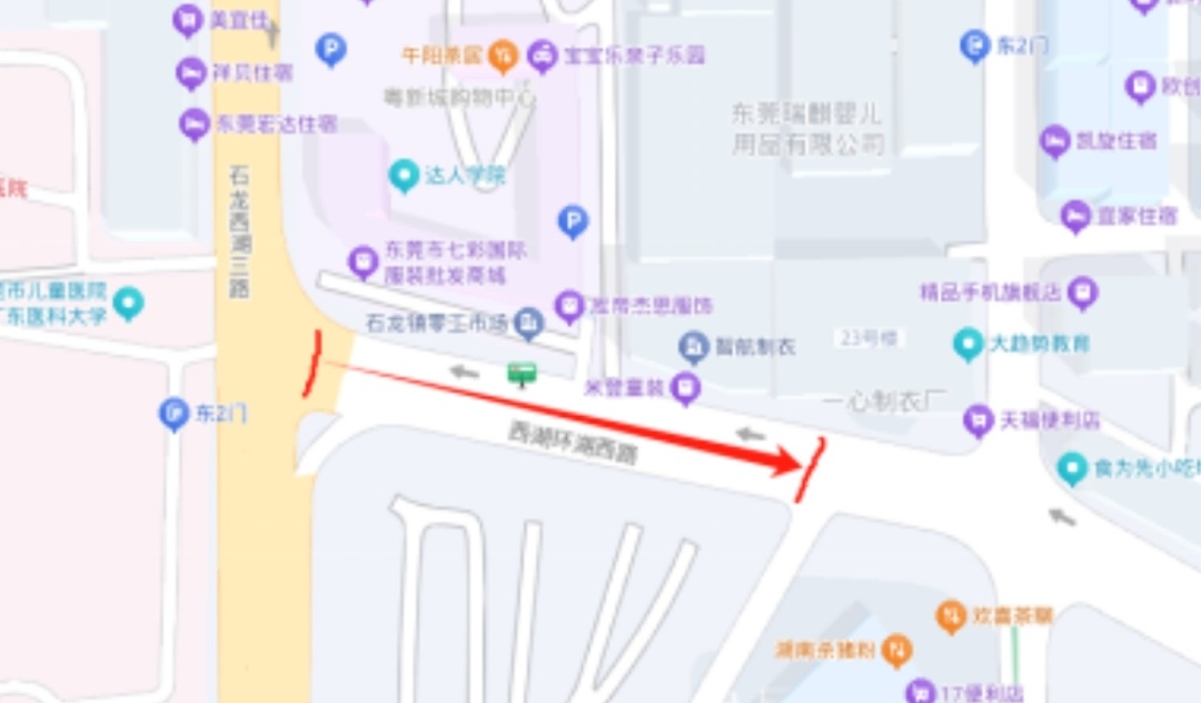 莞龙路西湖加油站至莞龙路西湖一路路口(双向)