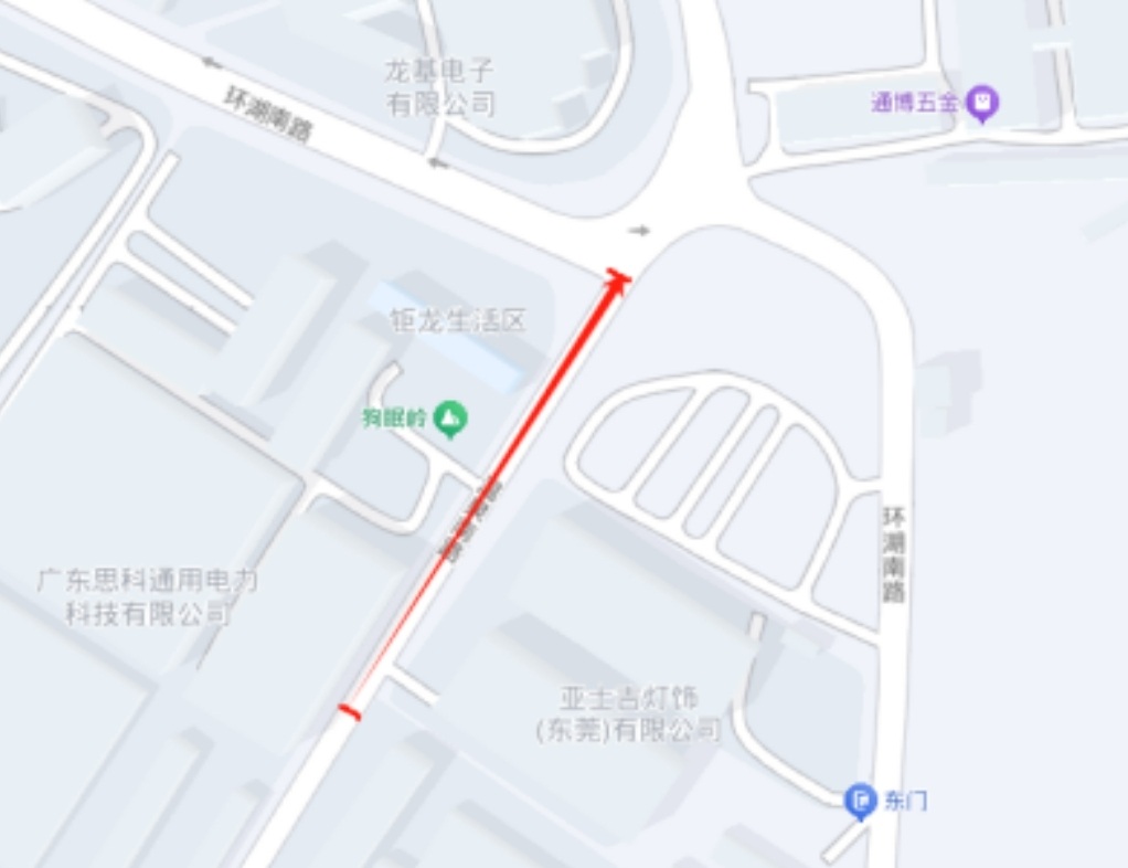 温泉南路与环湖南路路口至亚士吉灯饰(东莞)有限公司路段
