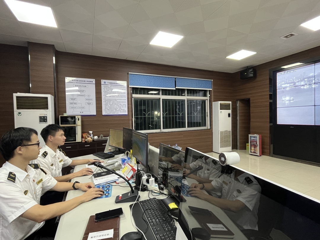 强化远程监管,严防险情发生。针对辖区重点桥区、水上加油站、渡口渡船及船舶锚泊区域等关键水域,执法人员连夜开展防台风电子巡查,重点核查船舶系固和人员值守等情况,督促在港船舶守听高频,加强值班,关注潮位、锚泊情况,防止发生走锚碰撞险情。