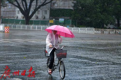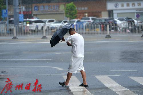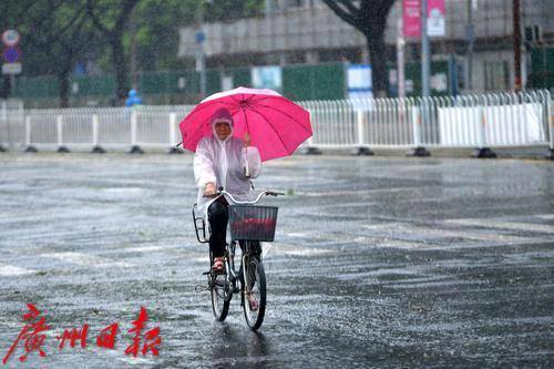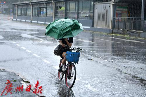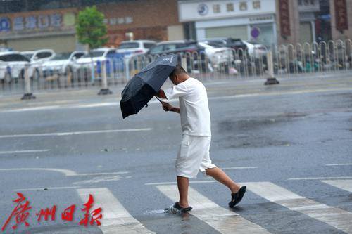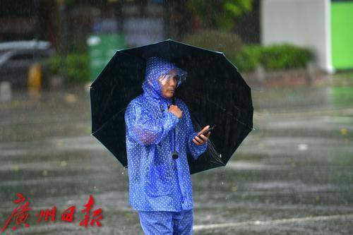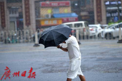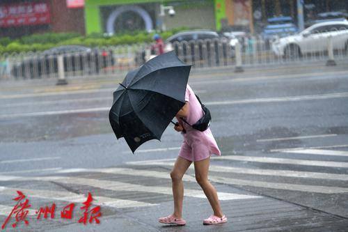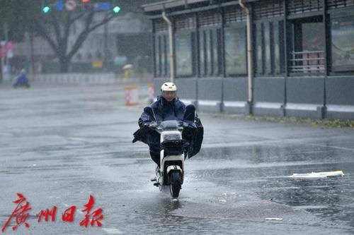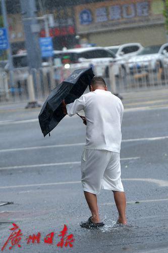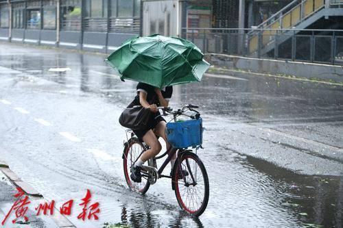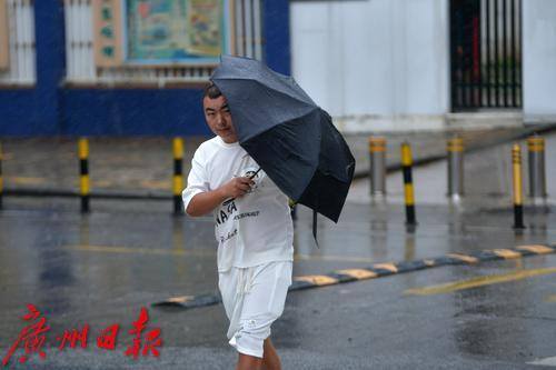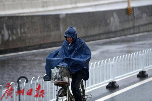 9月24日,受超强台风“桦加沙”影响,广州迎来疾风骤雨。上午,中山大道中车辆及行人寥寥,一些市民顶着风雨出行。