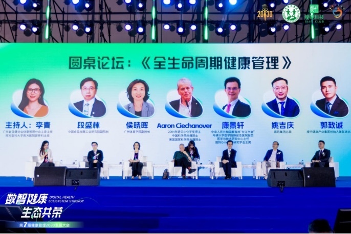 在大会的圆桌论坛环节,多位中外专家围绕《全生命周期健康管理》这一主题进行了深度对话。论坛由南方医科大学营养科主任李青教授主持,中国食品发酵工业研究院副院长段盛林、慕思集团总裁姚吉庆、哈佛大学医学院脂类研究院主任康景轩、2004年诺贝尔化学奖得主Aaron Ciechanover、广州体育学院副校长侯晓晖以及瘦吧健康产业集团联合创始人郭致诚等嘉宾,分别从生物发酵技术、睡眠科技、脂类营养、分子医学、运动科学和数字健康等不同维度,探讨了如何为不同年龄段、不同健康需求的人群提供系统化、个性化且可持续的健康管理方案。专家们一致认为,实现全生命周期健康管理的核心在于“精准化”与“个性化”,亟需打破学科壁垒,推动科研、产业与日常健康行为的深度融合。