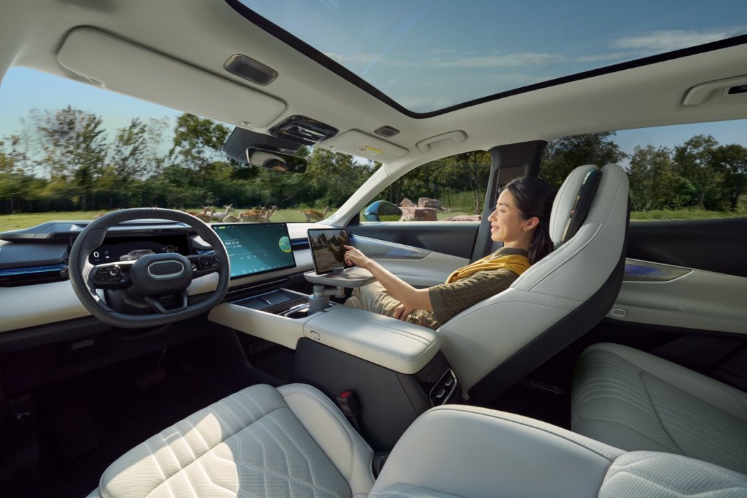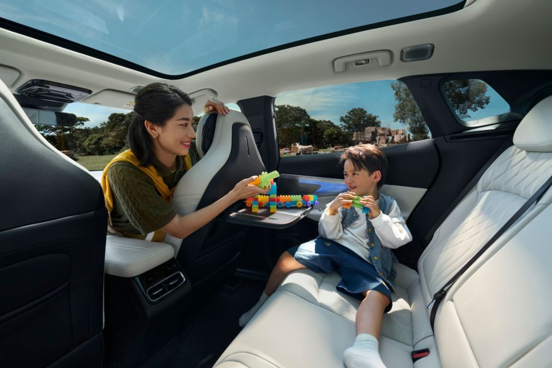 针对家庭使用场景,空间上,新车以“四座平权”理念打造,后排纵向空间近1300mm、后备厢最大扩容至1277L,7L双开门冷暖控温冰箱、承重15kg的二排小桌板,可满足家庭载物、饮食及多场景使用需求。