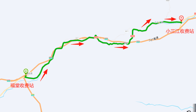 绕行线路:需从福堂互通主线往二广高速广州方向行驶的车辆,请绕行地方公路(G234)至小三江站进入高速。