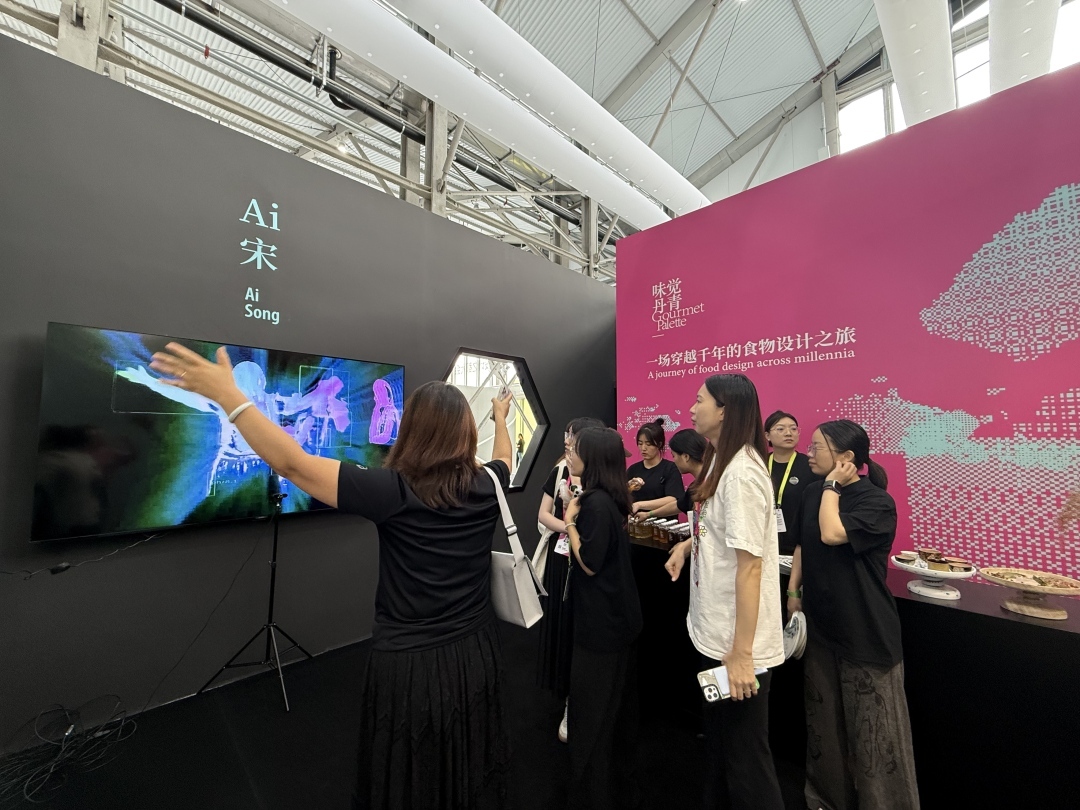 现场还有不少沉浸式互动体验,松果设计联合沉浸式文化感官餐厅良设夜宴和华师大设计学院共同打造《味觉丹青》 食物设计体验展,其中“ Ai 宋 ” 环节大排长龙,观众可通过与 Ai 互动,即时获得一份体质测试成果及相对应的养生指南。