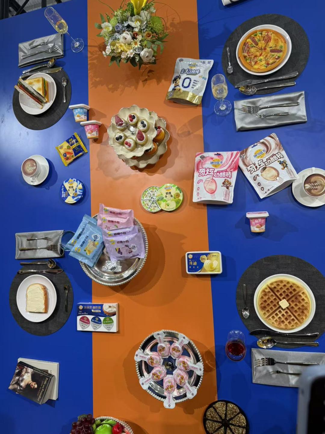 食品与设计方面,妙可蓝多展台现场通过波普艺术的视觉张力与品牌标志性的活力色彩,解构奶酪的基础形态,具象化地呈现“奶酪+时尚”的理念。